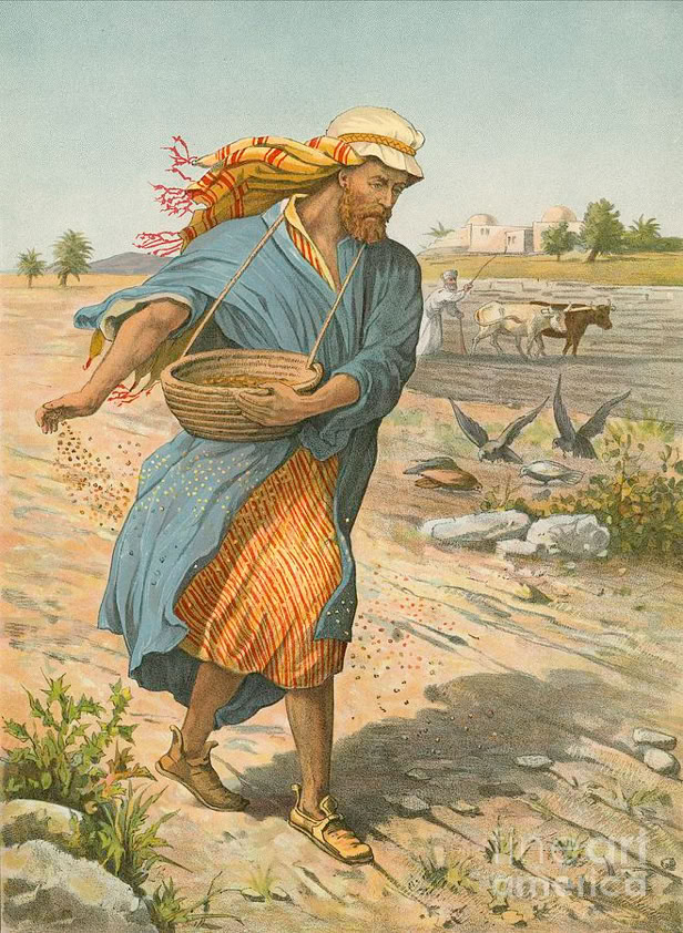 Lo, the sower went forth to sow, and in his sowing, some indeed fell by the way, and the fowls did come and devour them, and others fell upon the rocky places, where they had not much earth, and immediately they sprang forth, through not having depth of earth, and the sun having risen they were scorched, and through not having root, they withered, and others fell upon the thorns, and the thorns did come up and choke them, and others fell upon the good ground, and were giving fruit, some indeed a hundredfold, and some sixty, and some thirty. (Matt 13:3-8 Young's Literal Translation)1